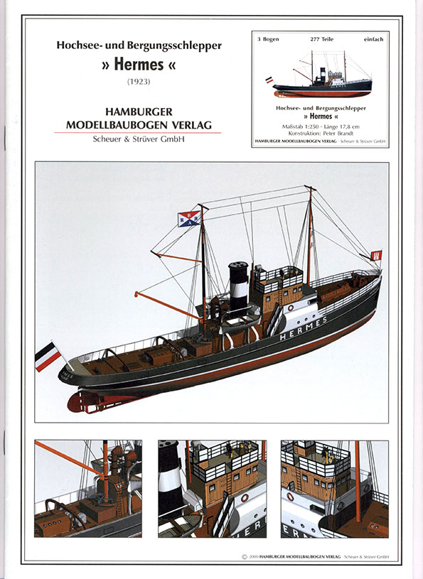 Буксир Hermes был спущен на воду в 1922 году в Гамбурге и был запущен в 1923 году как первый дизельный буксир.